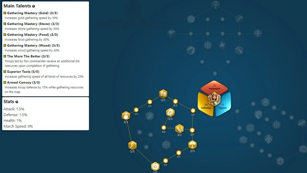 Therefore, a dedicated gathering commander like Cleopatra is essential. She allows you to focus your main commanders on combat and strategic plays.