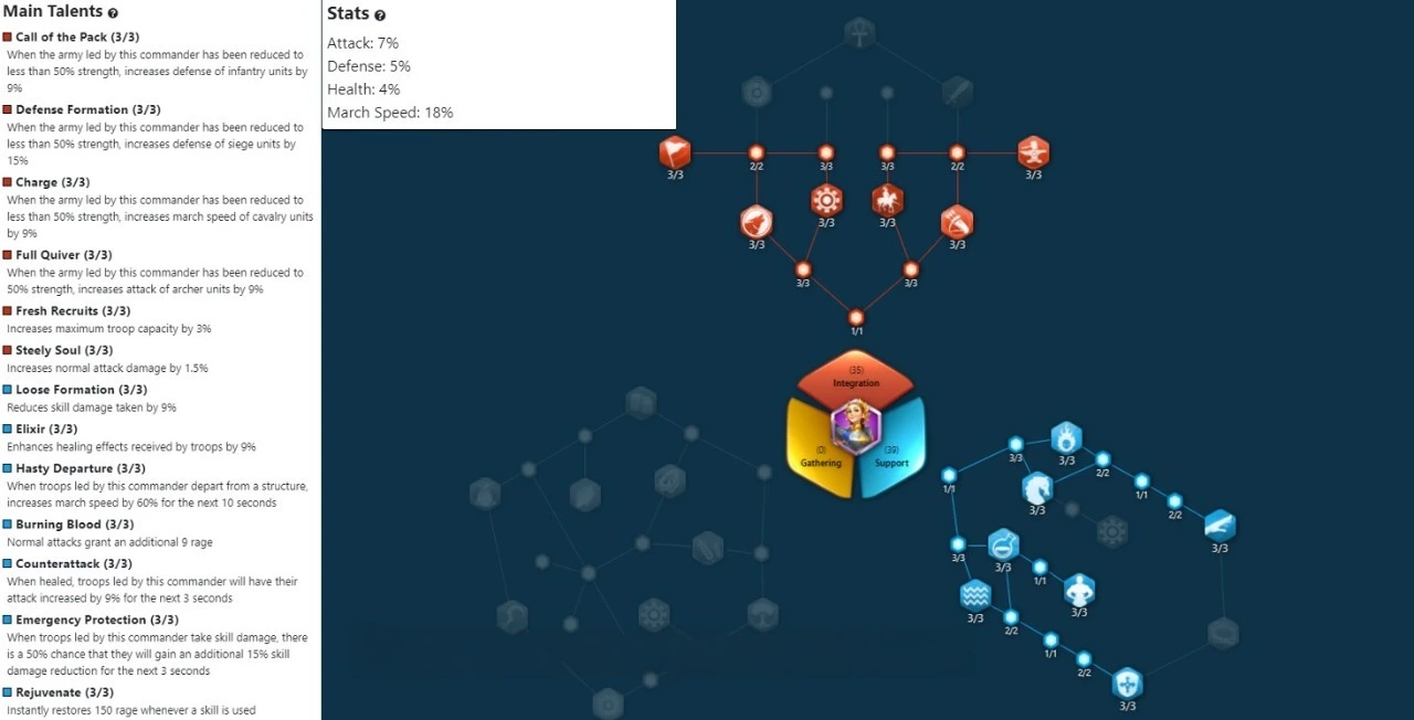 - Adjust points between “Counterattack” and march speed based on the battlefield.