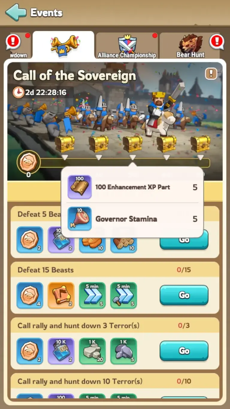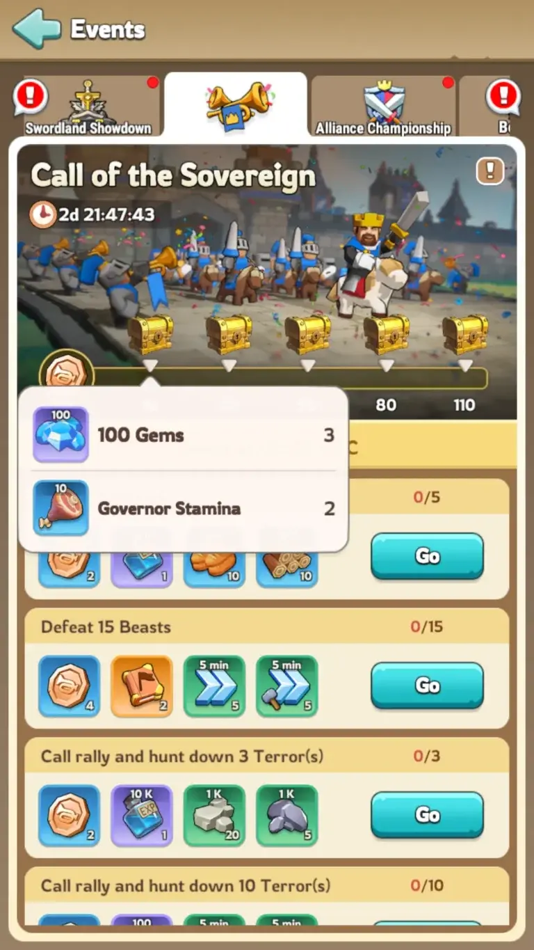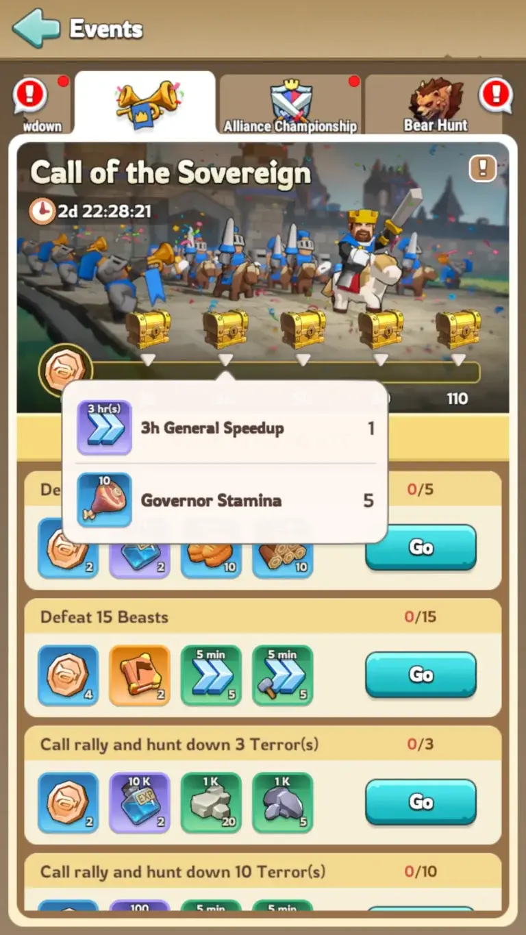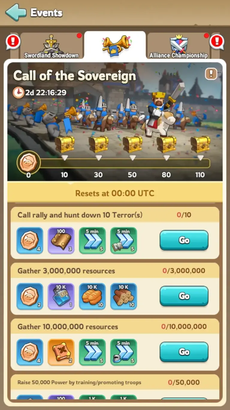 The key to success in the Call of the Sovereign lies in efficiently completing the event tasks. Each task rewards you with Glory Points, which you need to unlock those sweet chests. Here’s a breakdown of the common tasks and some tips to optimize your efforts: