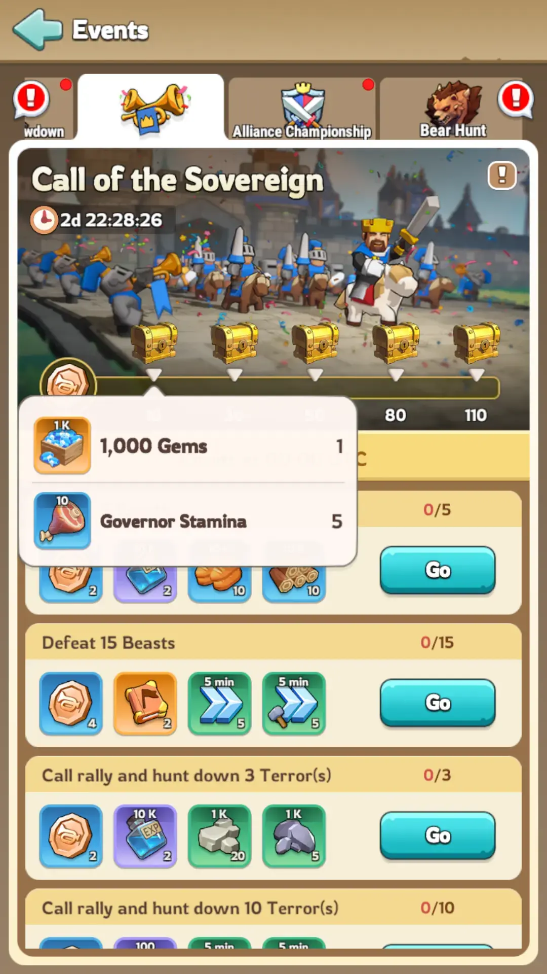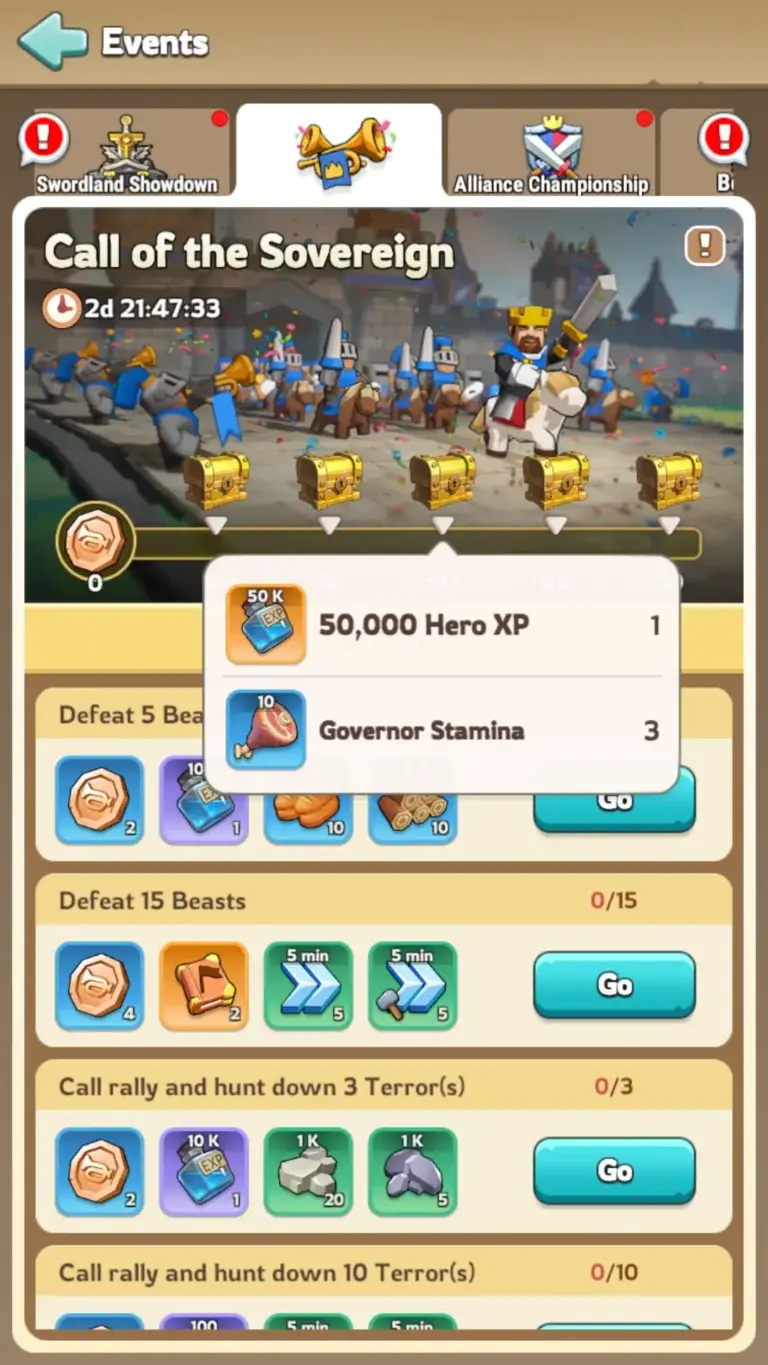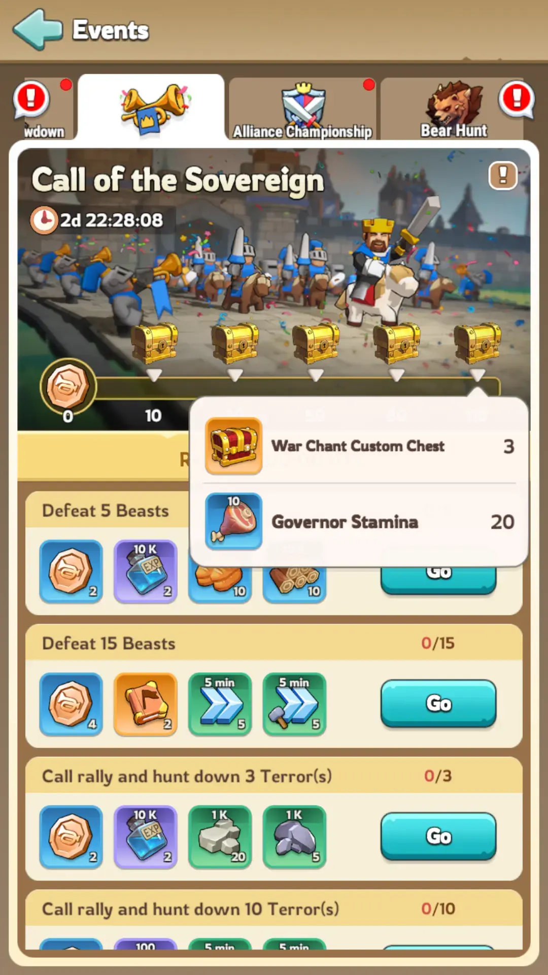 The key to success in the Call of the Sovereign lies in efficiently completing the event tasks. Each task rewards you with Glory Points, which you need to unlock those sweet chests. Here’s a breakdown of the common tasks and some tips to optimize your efforts:
