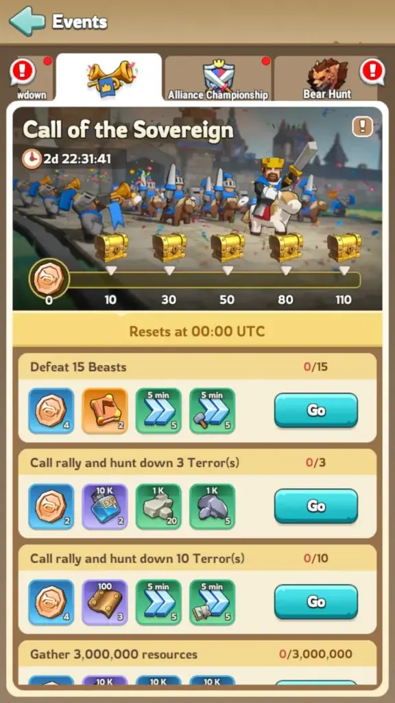 Kingshot Call of the Sovereign Event Guide & Rewards Event Tasks 1 Kingshot Call of the Sovereign Event Guide & Rewards Event Tasks 2 Kingshot Call of the Sovereign Event Guide & Rewards Event Tasks 3