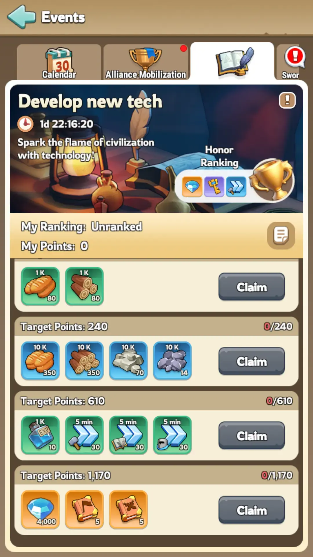 - Save Speedups: Begin stockpiling research speedups as soon as the event appears on the calendar. Patience is vital to earn all the rewards.