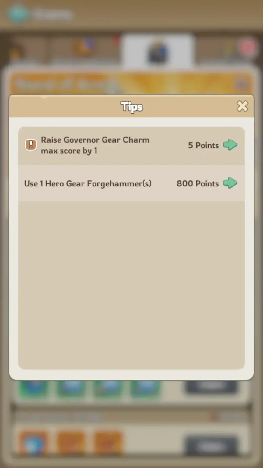 - Raising your Governor Gear Charm: Leveling up your Governor Gear Charm gives you points. The higher the level, the more points you earn. So, prioritize those upgrades!