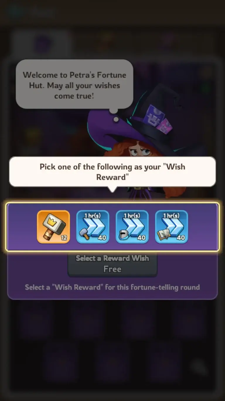 1. Pick Your Wish: At the event’s start, choose a “Wish Reward” from a selection of four items. These often include Forgehammers, Governor Charm Materials, Gems, Speedups, or Hero XP. The available items depend on how many times you’ve previously claimed the Wish Reward.