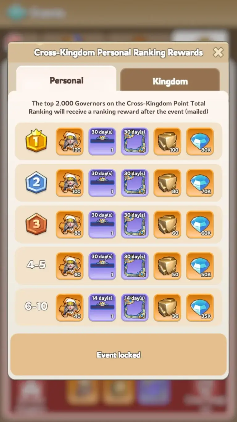 • Cross-Kingdom Ranking Rewards: Rank among the top 2,000 players across all kingdoms. These rewards are the most lucrative.