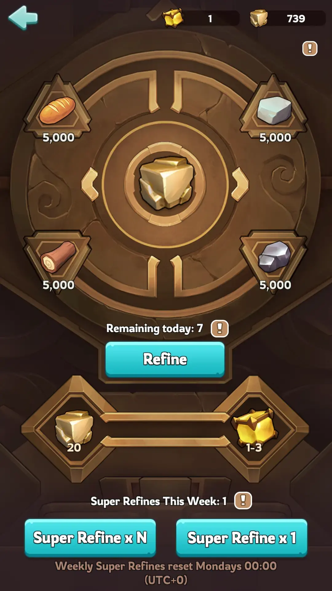 - Start the week (Monday) by doing 20 Super Refinements. This will maximize Tier 1’s low cost.