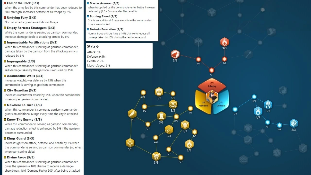 Expertise – Tyrannical Lion: Reduces damage taken and increases damage to cavalry. Decreases target march speed.
