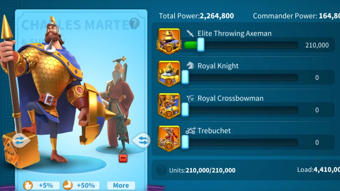 Like Richard, Charles Martel is a defensive infantry commander. Partnering him with Joan of Arc provides both tankiness and versatility.