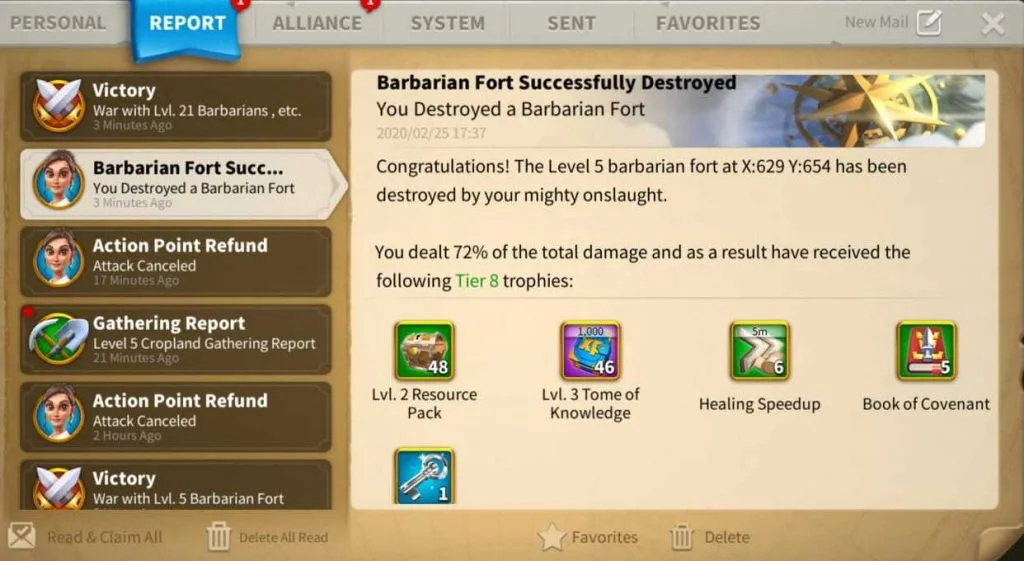 But it is crucial to join a high-activity alliance for maximum impact. In addition, each fort destroyed gives you a chance to recover 50 action points. Level 5 forts offer a massive 46,000 XP, along with valuable books of covenant.