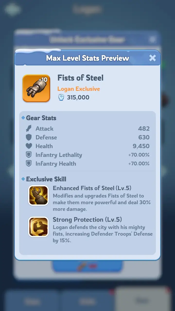 Logan’s expedition skills are critical for rallies and marches on the world map. These skills significantly boost your troop’s capabilities. Consequently, you’ll be dominating the battlefield.